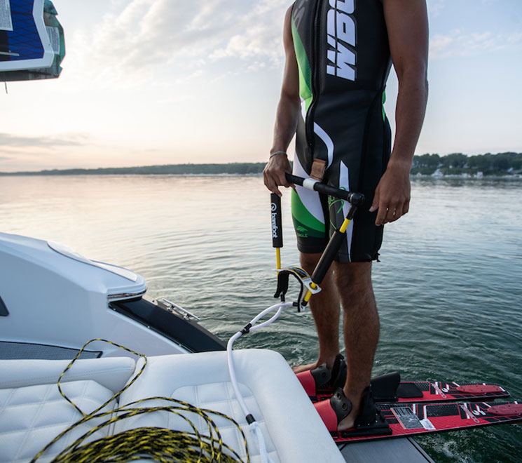 Wider skis make deep-water starts easier, offer more float, and give a smooth, predictable, less tiring ride. Narrow slalom skis are built for hard charging: they switch edges quickly, carve tight high-speed turns, and often need more boat speed to ride properly. Many modern recreational skis use a hybrid shape, with extra width up front for easy starts and a narrower tail for more responsive turning and performance.
